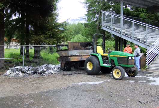 Tuesday’s fire at Adair Kennedy Memorial Field in the Mendenhall Valley will delay the turf replacement project, but the contractor says it will be done by football season.