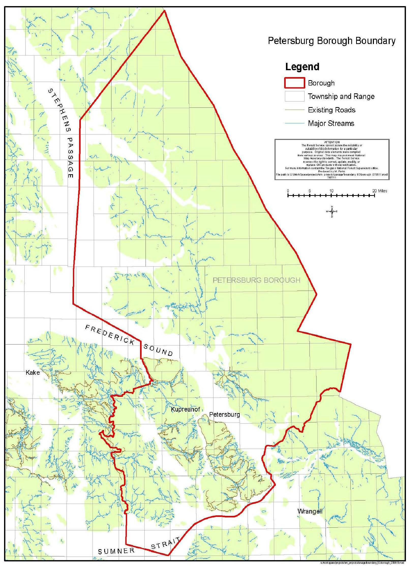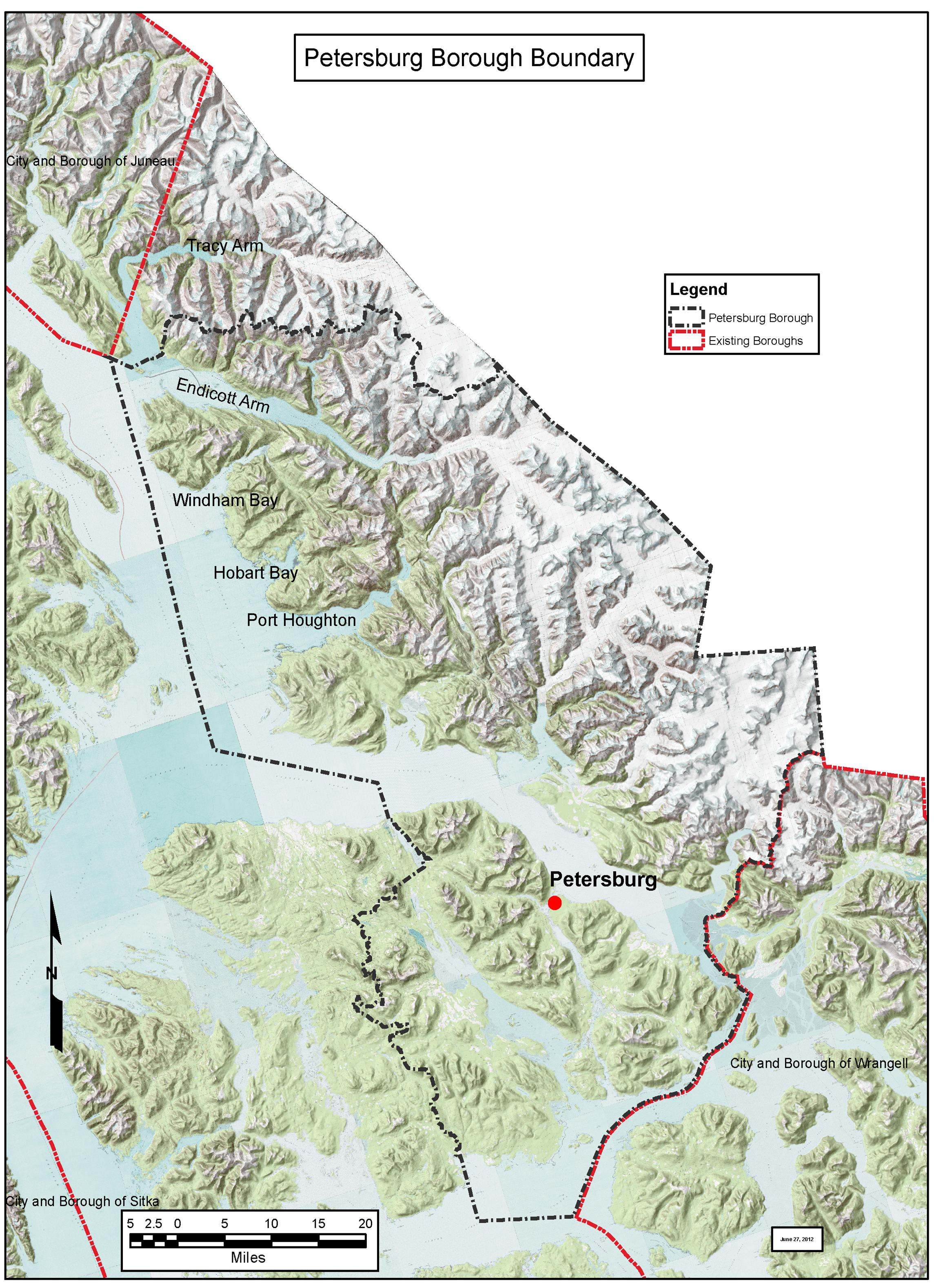 The City and Borough of Juneau says the northern boundary for the recently-formed Petersburg Borough is wrong. It’s a jagged line that starts in northwestern Holkham Bay and runs from peak-to-peak north of Endicott Arm all the way east to the Canadian border.
