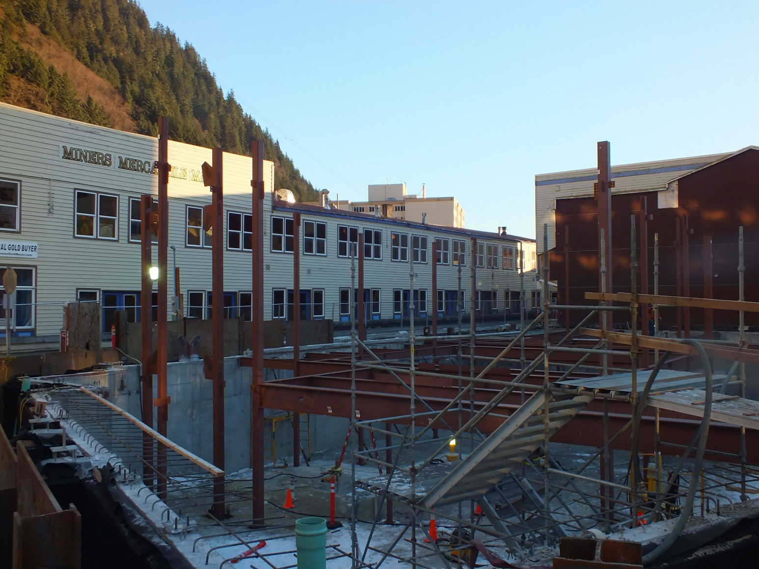 Construction workers this week began erecting the steel frame for Sealaska Heritage Institute’s Walter Soboleff Center in downtown Juneau.
