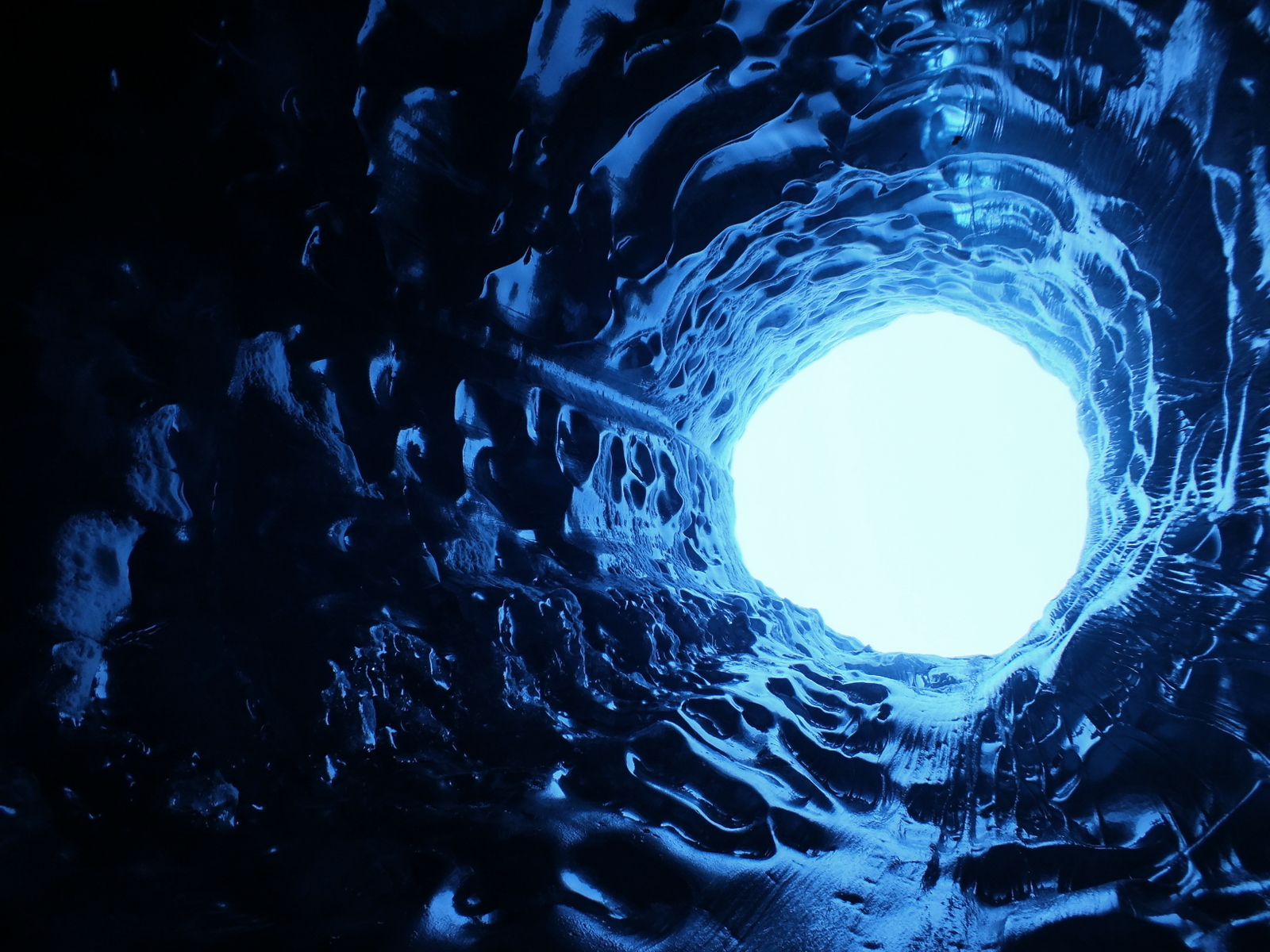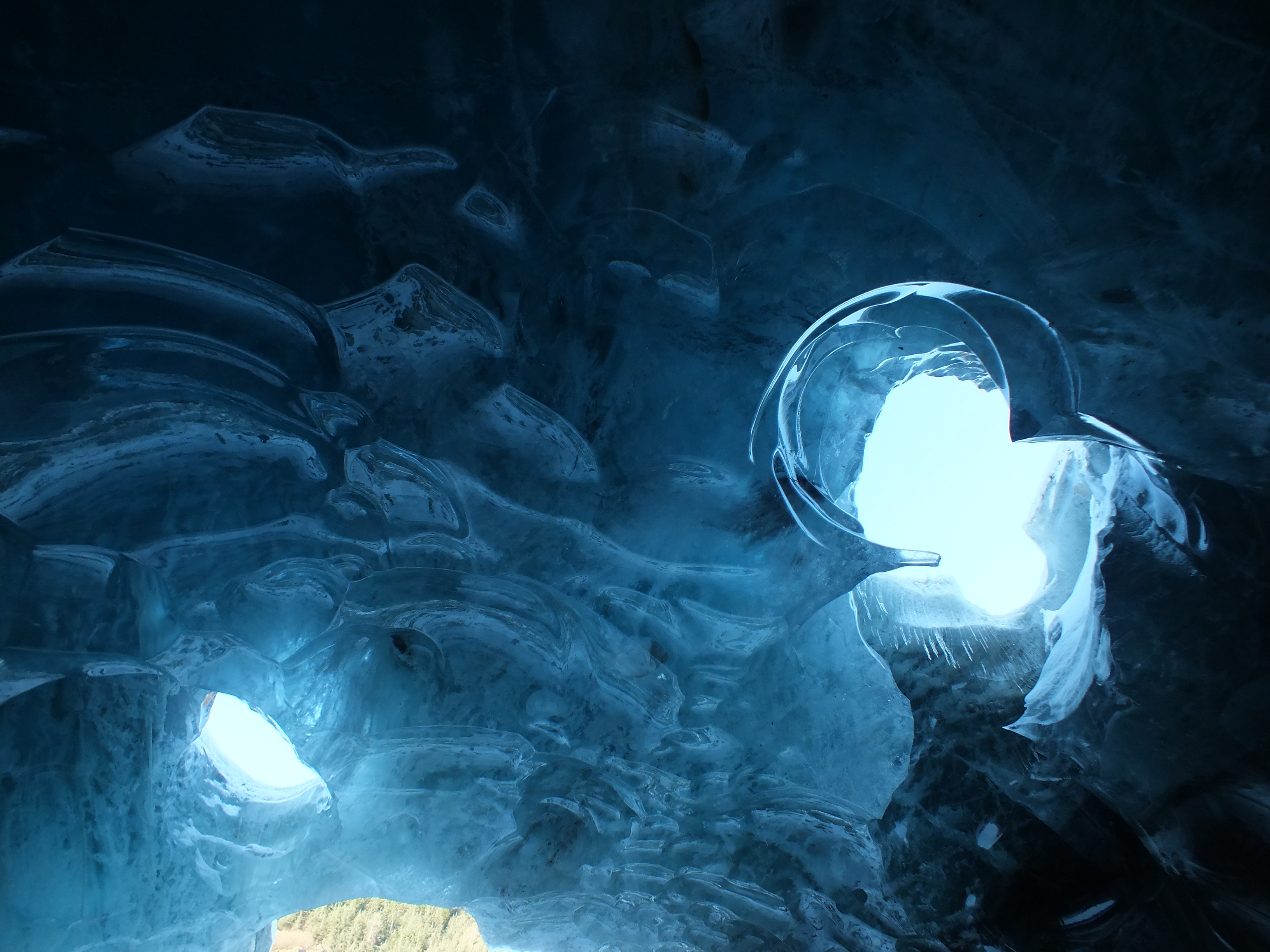 Another stream on the glacier surface found a fissure or crack and, over time, created the giant circular shaft or moulin that allows daylight into the far, accessible end of the cave. Amundson said it’s a fairly common feature on glaciers.