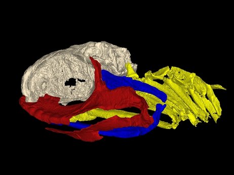 The fossil of this beastie is equally modest: It looks like an ordinary brown rock. But in recent years, paleontologists have begun using tools like CT scanners to look inside fossils. When Maisey scanned the fossilized head of the new shark, he got a shock. Inside, “it’s not like the anatomy of a modern shark at all,” he says.