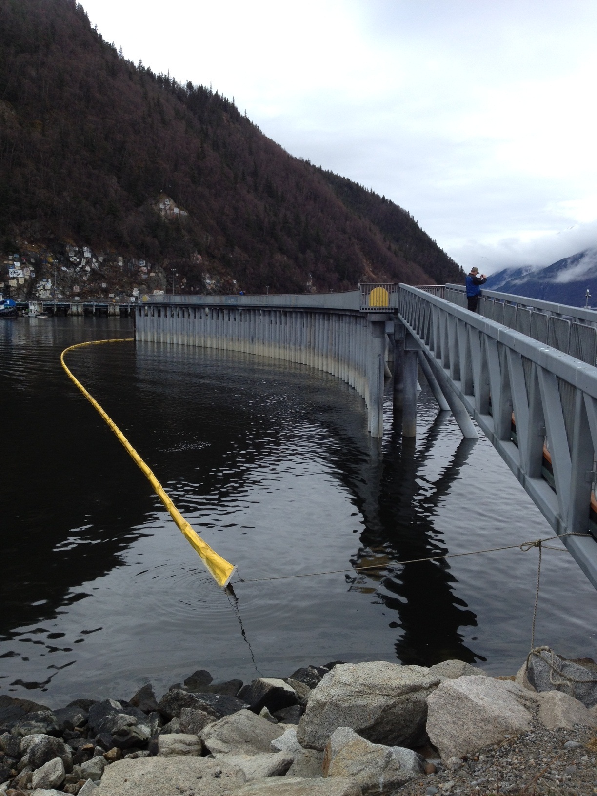 Skagway resident Gary Heger was one of the first to see it early Thursday morning. He says the tugboat Anna T was tied up on the east side of the dock and the west side was underwater. When the tug untied from the dock, the rest of the dock sunk.