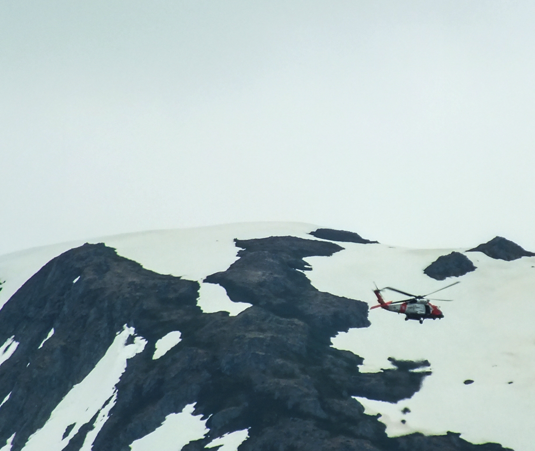 A Juneau Mountain Rescue member is onboard directing the search and thermal imaging devices are being used. This is the Coast Guard’s second scan, and the fourth helicopter search overall since Sunday.