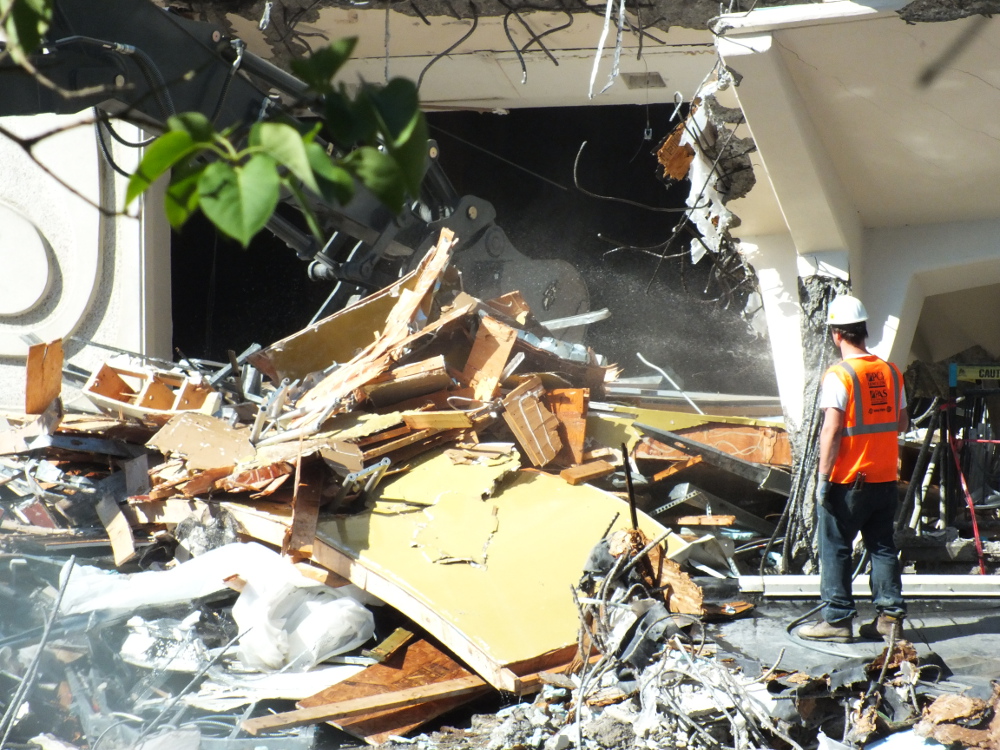 There’s a fracture line at the second-first floor union horizontally on a lot of them. There’s a steel plate that was cast into the panel that was welded onto the structural steel. They’ve got to reverse that installation process and the crane has to support the panel. The contractor is working on a methodology to do it as carefully and thoroughly as they can.”