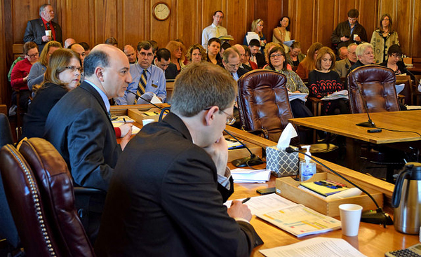 The House Finance committee room was so crowded and stuffy that the ceiling fans were actually needed. Walker administration officials, lobbyists, staffers, and reporters all packed in to see what the Health and Social Services subcommittee would do with Medicaid expansion.