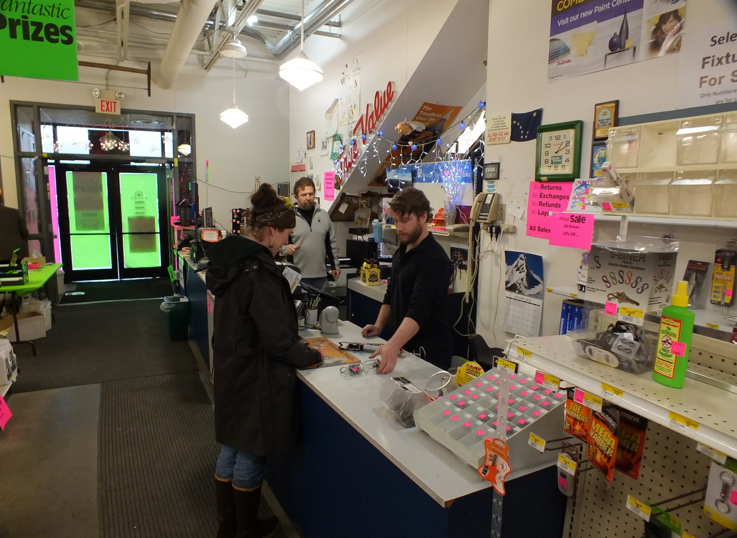 That small fortune would include the expense of remodeling most of the west end of the Foodland building that’s owned by the Juneau-based Rosenberger family. Good will have more space and more employees as he shifts from True Value to the Ace hardware line. Missing, though, will be his longtime hardware diva Terry Toon, who handled customer inquiries for unique parts and hardware solutions.