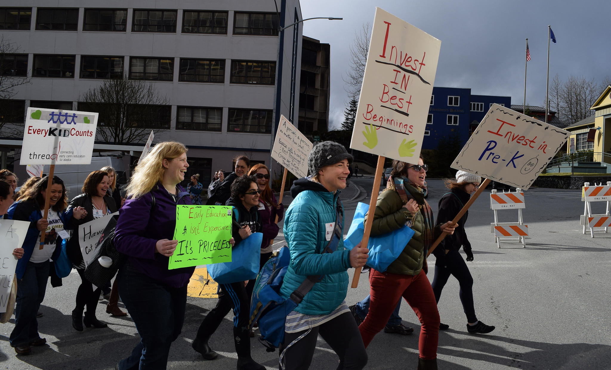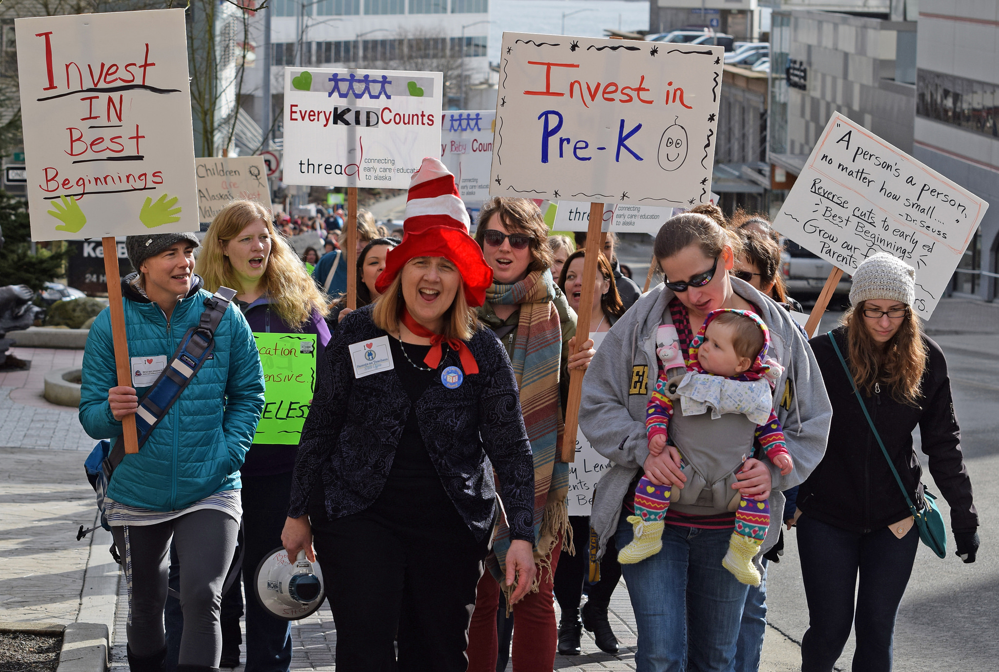 Early education supporters marched to the Alaska State Capitol on Friday. The rally had a Dr. Seuss theme for “Horton Hears a Who” — they wanted lawmakers to hear their support for early education.