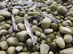 Williams says he usually catches 20 to 30 gallons of hooligan each spring. The small herring-like fish is traditionally used for oil and smoking. He says the only other times he’s seen the run this low in the Chilkoot is when the lake has been frozen.