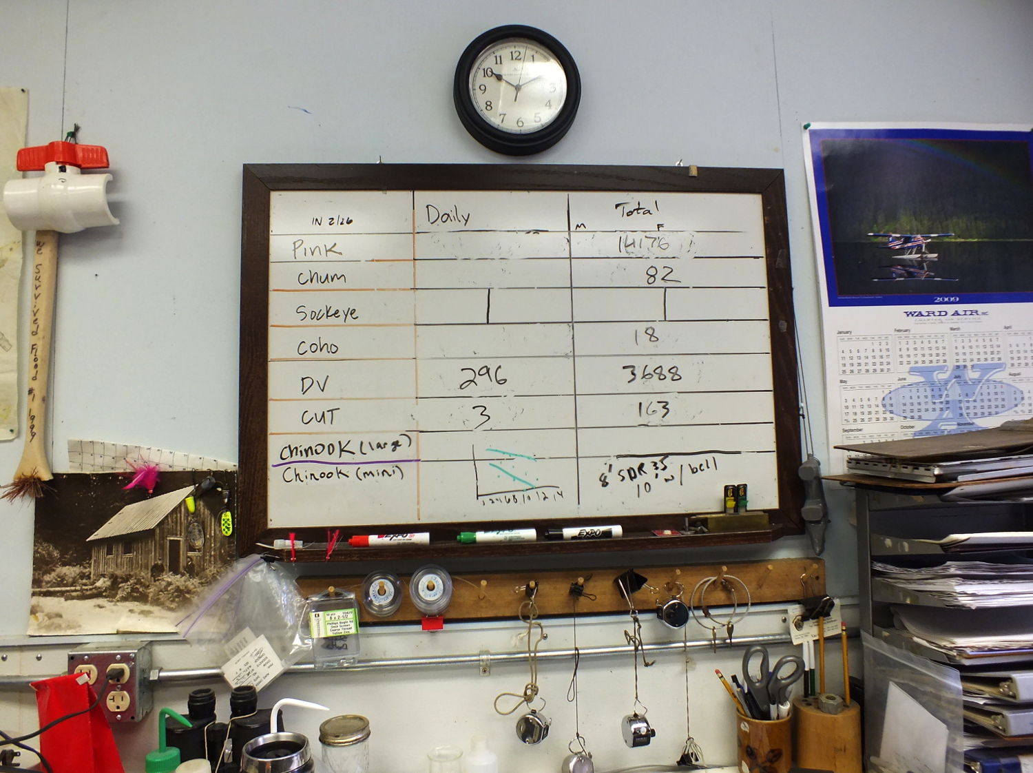 Based on data collected over the last 35 years at the weir, Joyce says Auke Creek’s out migration of pink fry is one of the lowest on record and two weeks ahead of schedule. Joyce suspects that recent mild winters and climate change are behind the subtle, yet steady trend of earlier pink migrations.
