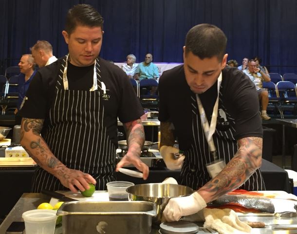 Schooler and sous-chef Travis Hotch brought sockeye salmon from Juneau company Taku River Reds to the competition.