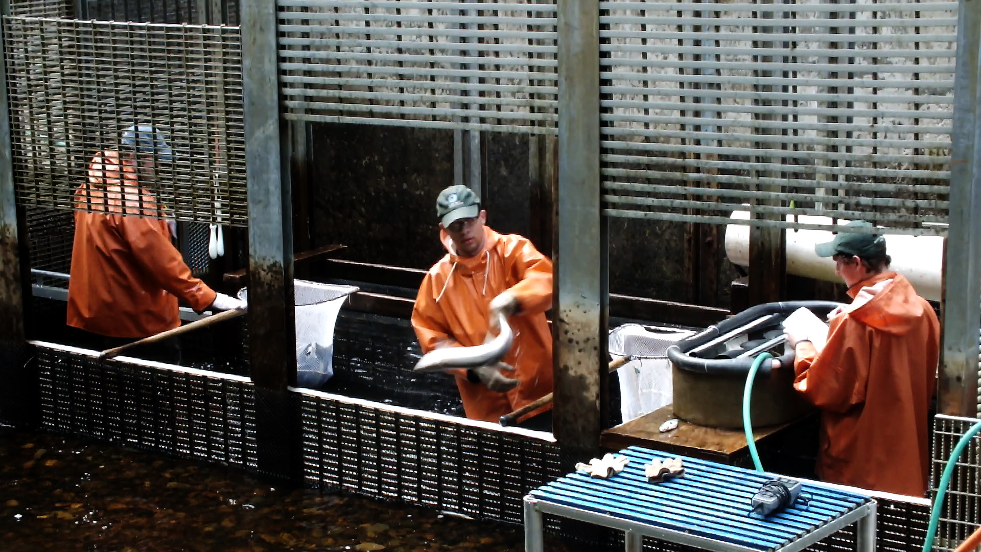 The Auke Creek facility is unique because biologists have data on stream flow and water temperatures that correspond with 35 years of continuously counting salmon that swim in and out of the stream.