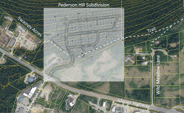 About a half mile past the Brotherhood Bridge on Glacier Highway lies the entrance to what could be an 86-lot subdivision planned by the city.