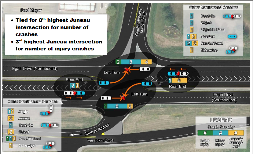 A recent study found that the uncontrolled crossing at Egan and Yandukin drives — the Fred Meyer intersection — has one of the highest rates of injury collisions.