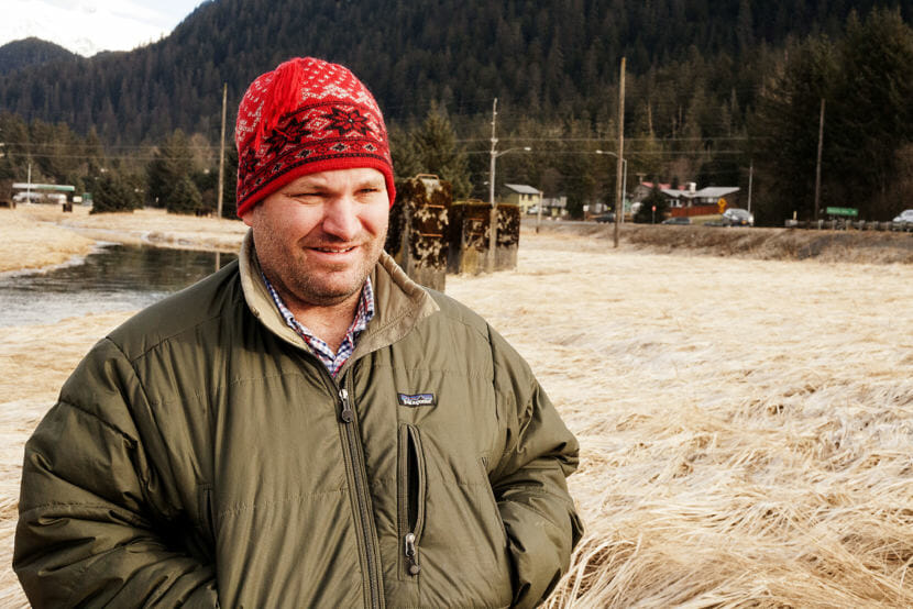 “It’s a nice cold, clear day out here — sun kind of shining through, but shining through enough,” Calvert said. “We’re in the wetlands, right at the turn off, off of Egan right by the Pioneer Home. … The creek coming out and all these concrete pilings, and traffic going by.”