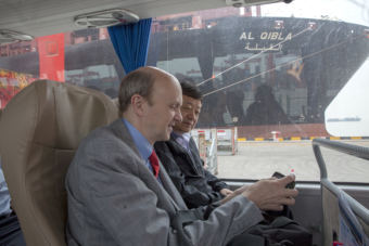 He’s up with the group first thing in the morning, and out late. On these long bus trips he usually puts his sunglasses on, crosses his arms and takes a nap. During a bus trip in Shanghai, with about a dozen people who are interested in selling what Alaska has to offer into China — Wang sits in the front seat, watching the horizon. He’s thinking about how much the city has changed since the first time he visited in 1991.
