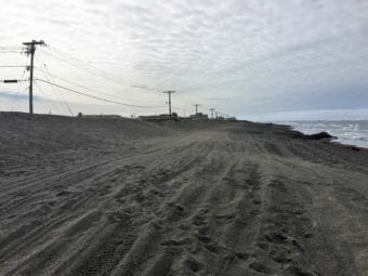 Right now, the borough’s main tool for combating the problem involves exactly that: throwing gravel at it. They’ve got a seawall made of wire mesh filled with gravel bags, huge “supersacks” full of gravel and a gravel berm they have to keep building up. The height varies, but even at 20 feet, it can be wiped out in a matter of hours if the right storm comes along.
