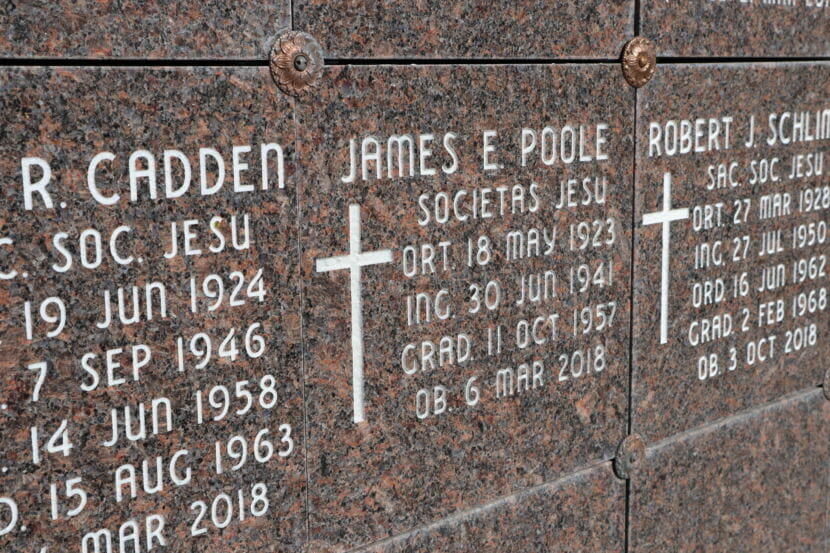 There, Poole’s remains rest amid 54 other Jesuits who were also accused of sexual abuse. They’re outside the gate of a K-12 school.