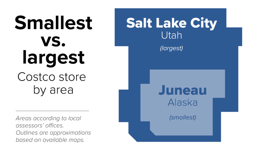 Juneau’s Costco is about half the size of a typical store, which is around 160,000 square feet. Like the one that opened in Fairbanks in November.