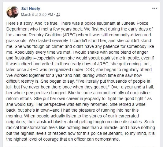 How do adversaries become allies? For University of Alaska Southeast associate professor Sol Neely and retired Juneau police Lt. Kris Sell, it wasn’t easy.