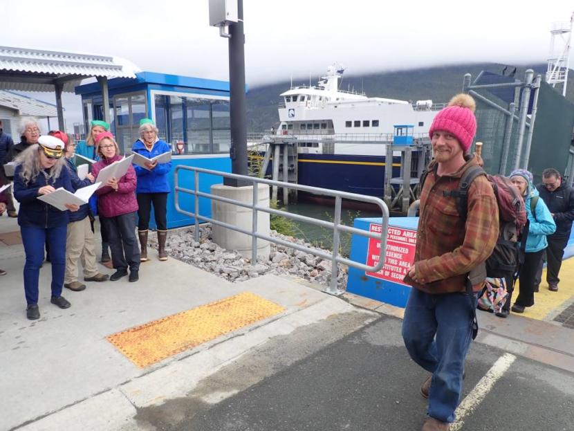 “We like to celebrate good things and we love the ferry system, so our women’s choir group decided we were going to greet the ferry this morning,” Haines Borough Mayor Jan Hill said.