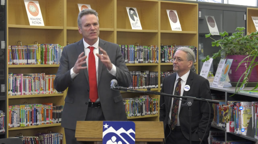 Gov. Mike Dunleavy and Anchorage state Sen. Tom Begich announced the bill at Turnagain Elementary School in Anchorage. Dunleavy is a Republican; Begich is a Democrat.