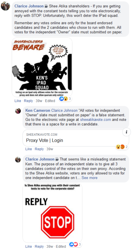 “I think that the increase in complaints to Banking and Securities against shareholders is a direct result of increasing power of shareholders as they gather in Facebook groups,” she said. “We’ve seen a rise of independent candidates across the board. So I think that this is just the way the corporations are pushing back against the will of the people.”