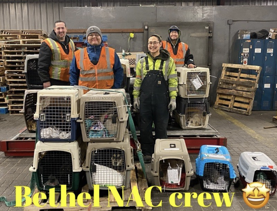 But to get there, the nonprofit needed a lot of help. Another nonprofit, Alaskan Animal Rescue Friends, helped raise money and offered support. Northern Air Cargo, Grant Aviation, and Ravn Alaska made space in their planes for kennels and transported the dogs out of Tuntutuliak. They shipped 28 dogs to Anchorage or Bethel for adoption.