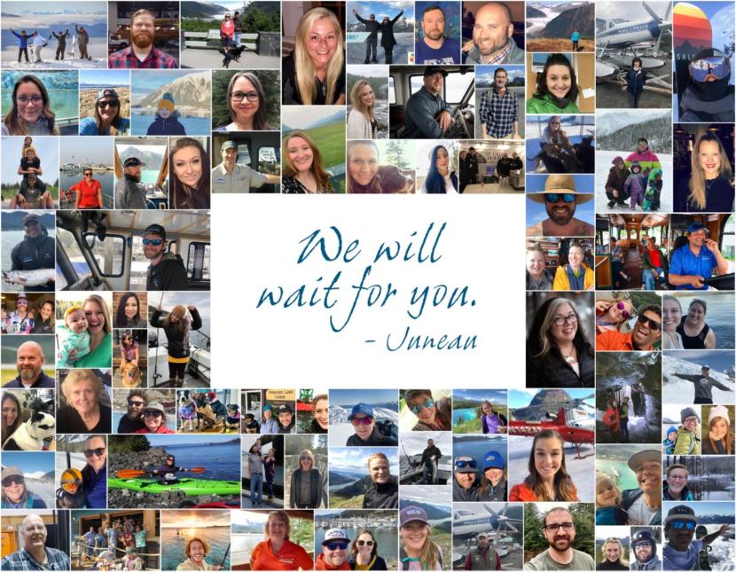 “We really just wanted to let future guests know, past guests know, everybody know, that we will wait. We’re still here,” said Liz Barlow, sales and marketing manager for Above and Beyond Alaska, a tour company in Juneau, and president of the local chapter of the Alaska Travel Industry Association.