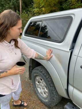 She said she feels pretty lucky, as she pointed out the paw prints all over her truck.