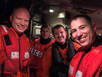 For more than two hours, four members of the U.S. Coast Guard traveled in an MH-60 Jayhawk helicopter, battling blistering, 50-mph headwinds.