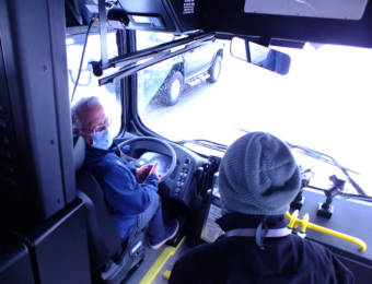 Kulm is completely unflappable, simultaneously providing commentary to passengers over the PA system and paying attention to traffic despite all the distractions. The only other sounds we hear are the bus’s interior ventilation fans and — sometimes — a very faint whirring sound of the bus’s electric motors.