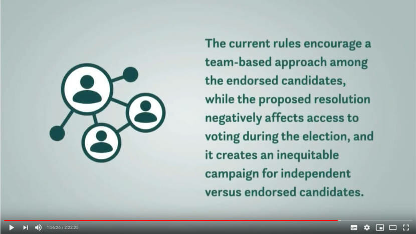 In election materials distributed to shareholders, it says the proposed changes could make, “some nominees look weak if they did not seek directed votes, and instead sought discretionary votes in support of the team.”
