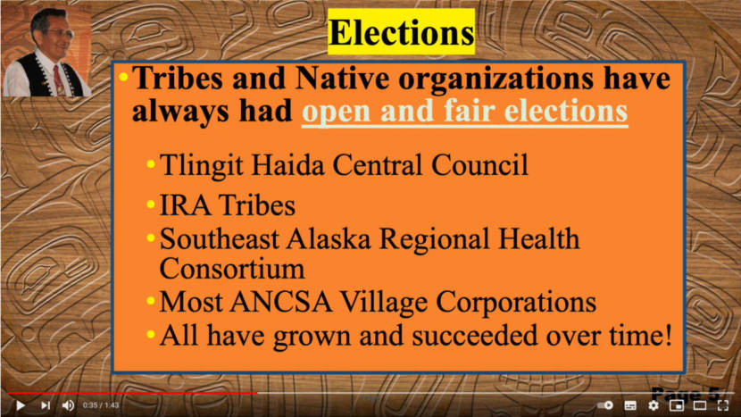 “I personally feel that it is not anti-Sealaska,” Thomas added. “You look at some of the folks that are young, up and comers, we really have positive people. And then they get a fair chance to go forth in their elections without having the cloud of having to bow to a leader in order to get elected.”