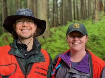 Graham is an entomologist with the National Forest Service. She points out some peaked looking hemlocks.