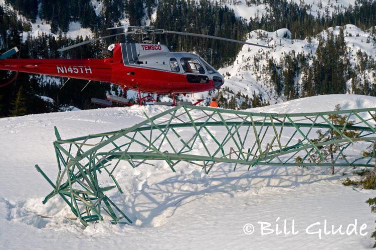 As well as the damaged and destroyed towers, over a mile of cable from the transmission line itself was carried down the slope and buried in the snow. Bill Glude says that threatened to pull down even more towers.
