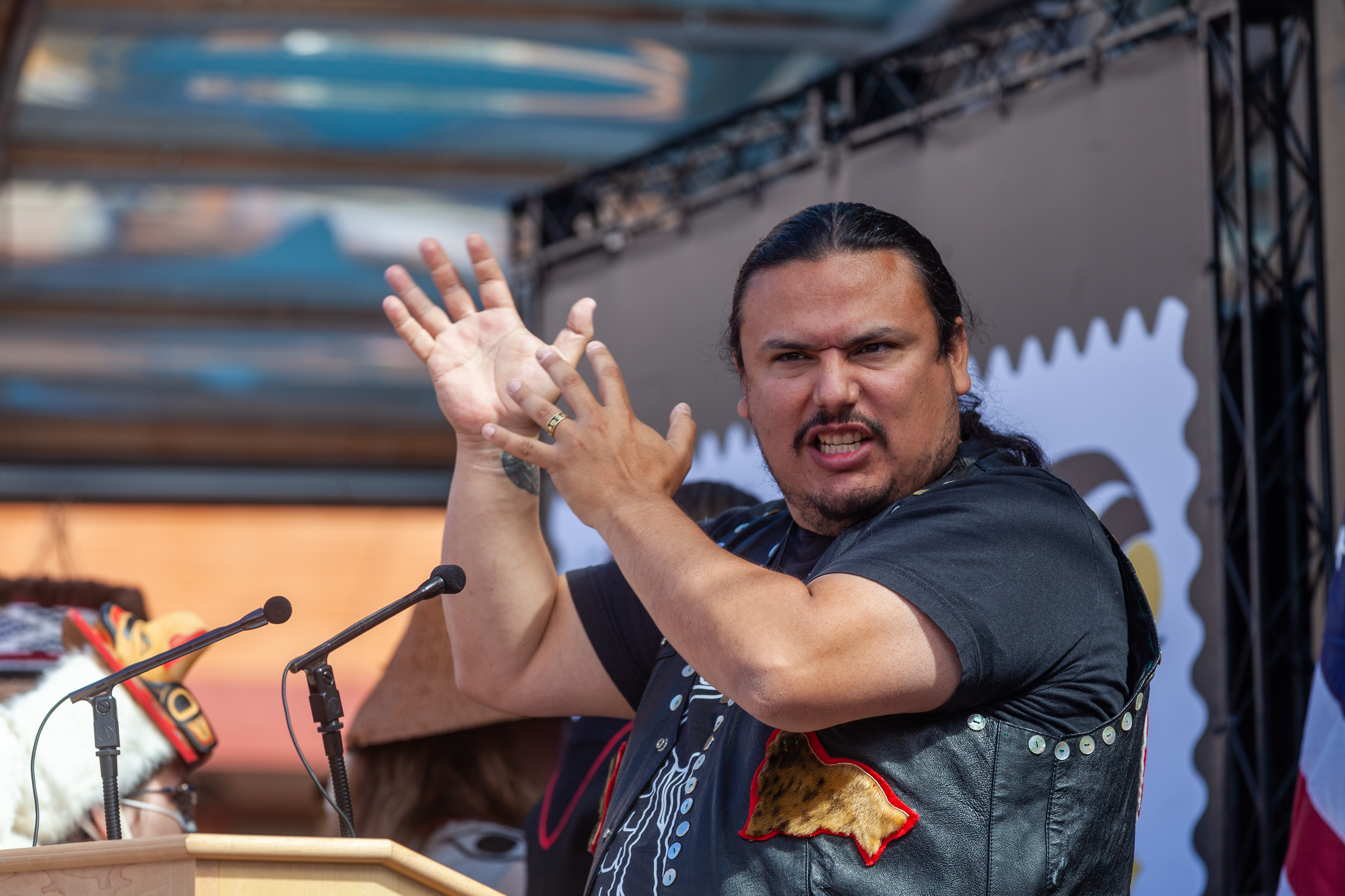“He has the goal to tell the story of Indigenous people today,” said Marlene Johnson, the Chair of the Board at Sealaska Heritage Institute, which sponsored the ceremony with the postal service. “The story that we are all still here. We have been here for at least ten thousand years and we’ll be here ten thousand more.