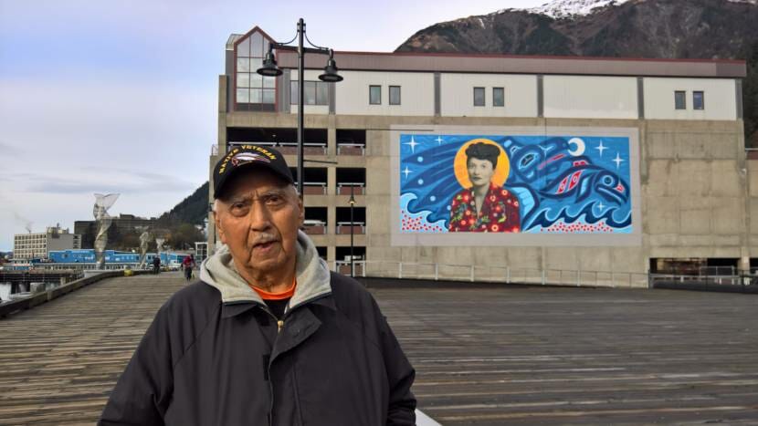 His dad was keeping an eye on him, and so was Alaska civil rights leader Elizabeth Peratrovich — in the giant, three-story mural behind him. Emmett didn’t recognize her, but the decked-over lot along Juneau’s Seawalk could soon be renamed for her: “Peratrovich Plaza.”