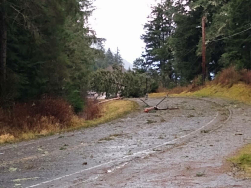 The storm also snapped the tops off of three utility poles near Wrangell’s City Park, causing power outages in Petersburg as well.