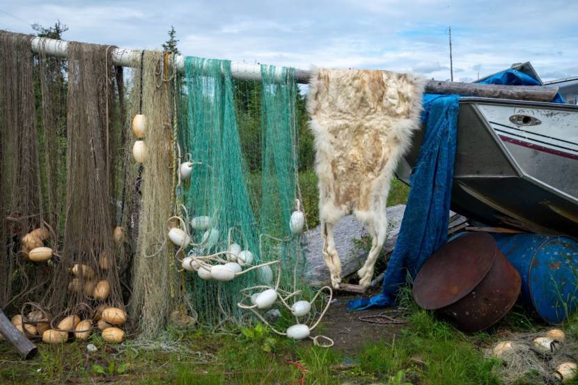 In the spring, there’s duck and beaver hunting, and sometimes bear. In the summer, people harvest sheefish from the river, set nets for chum salmon and gather blueberries, salmonberries and cranberries. Fall is hunting season for caribou and moose.