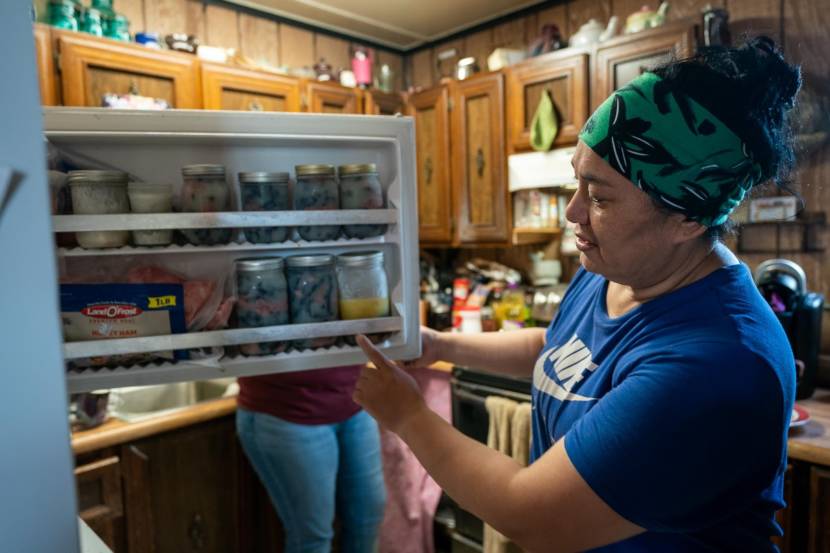 Clara Jones, 49, has three freezers at her home in Ambler, plus another in a tent outside, that preserve the harvests she shares with family members and friends — including many in other villages and even on the road system.