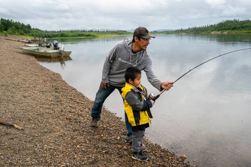 Carl Snyder fishes for sheefish with his son Carl Jr., 5, in Kobuk. (Loren Holmes / ADN)