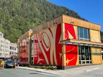 A new totem pole in Juneau is 22 feet tall, almost 4 feet wide at the base and about 7 to 8 feet wide where Raven and Eagle are. You have to walk around it completely to see all of the elements. Unlike most poles that are carved on one side, the Sealaska Cultural Values totem pole is carved all the way around, a full 360 degrees. According to Sealaska Heritage Institute, there are only three others like it, all in Canada. Now, there’s one in Alaska.