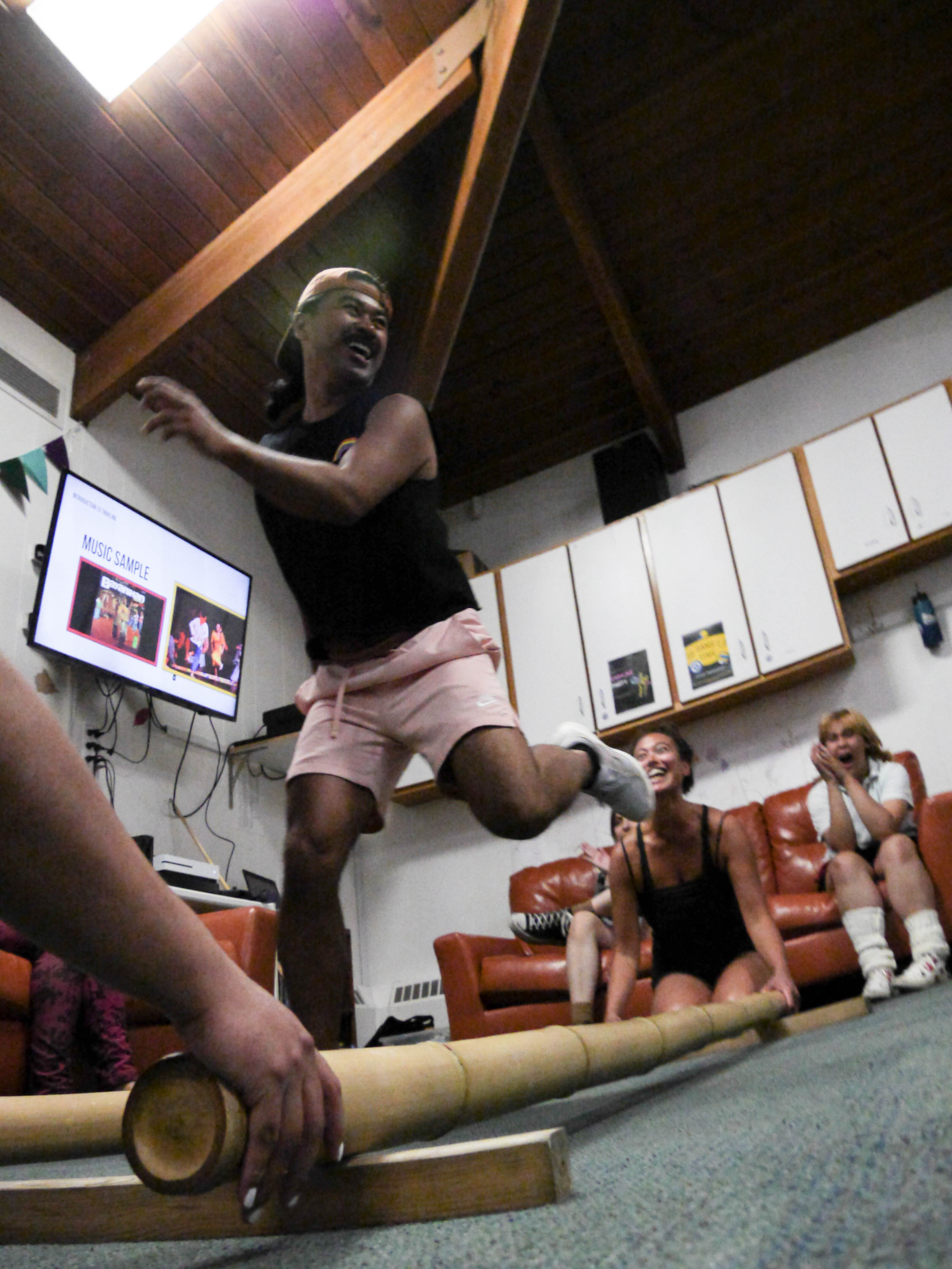 Daryl Lagundino learning tinikling at the Zach Gordon Youth Center in Juneau on June 29, 2022. (Photo by Paige Sparks/KTOO)