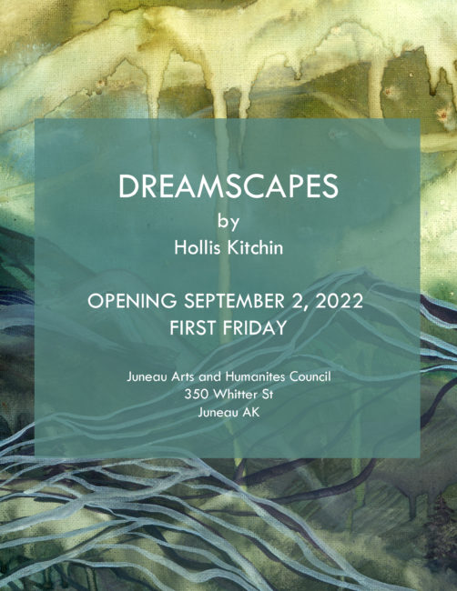 Hollis Kitchin calls her latest collection of watercolors, “Dreamscapes,” inspired by the surreal dreams she had while she was pregnant. In this interview with KTOO’s Rhonda McBride, Kitchin also talks about juggling art, the recent birth of her son and being owner of “Busting Out Boutique,” a store in downtown Juneau that sells lingerie and maternity wear.