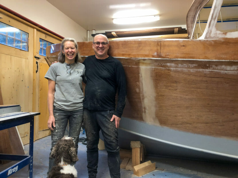 The couple builds adult-sized boats, too — like the 30-foot fishing boat they started last January. Standing in the Joneses’ woodshop and guest house — which they also built themselves — Colleen gestures towards the hull, recently coated in resin.