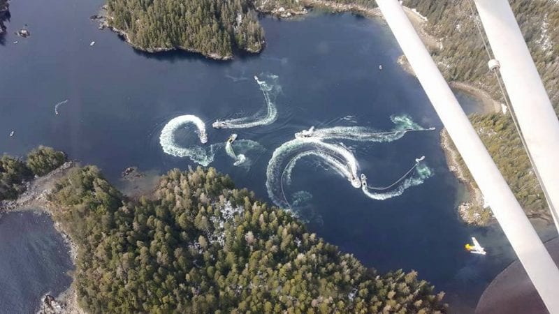 Herring predators were widely dispersed, but groups of humpback whales were observed near Inner Point, north of Middle Island, and south of Galankin Island. Groups of sea lions were observed near Inner Point, Mountain Point, and Bieli Rock. Department and industry vessels surveyed from Indian River to Deep Inlet and from Inner Point to Mountain Point.