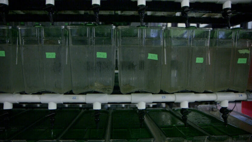 Tanks filled with seawater pumped in from the bay replicate conditions on the seafloor.