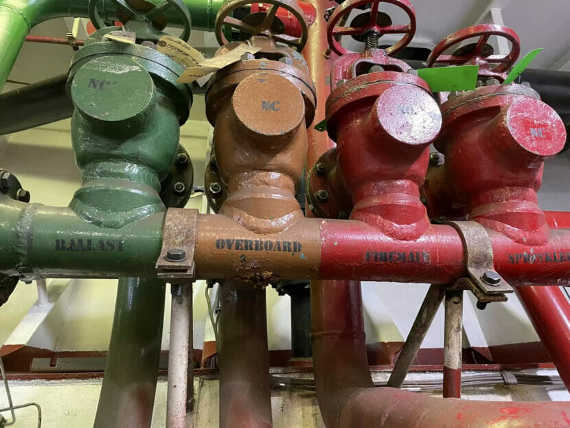 A fire main valve on the Alaska state ferry Columbia. (Photo courtesy of Alaska DOT)