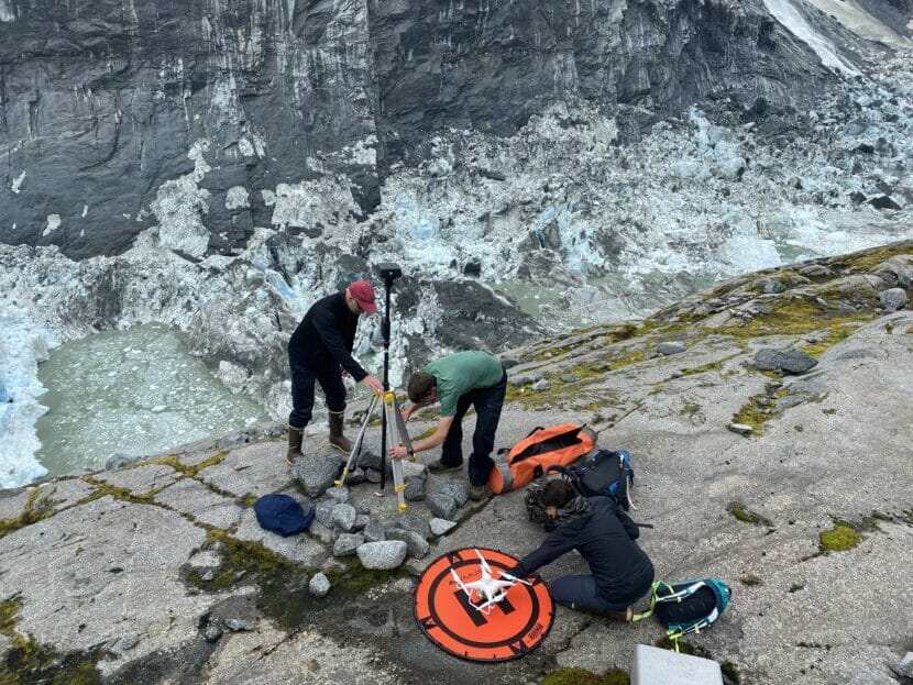 Hydrologist Ed Neal of Alaska Hydroscience sat watching the drone from a boulder, facing the roughed-up surface of the glacier.