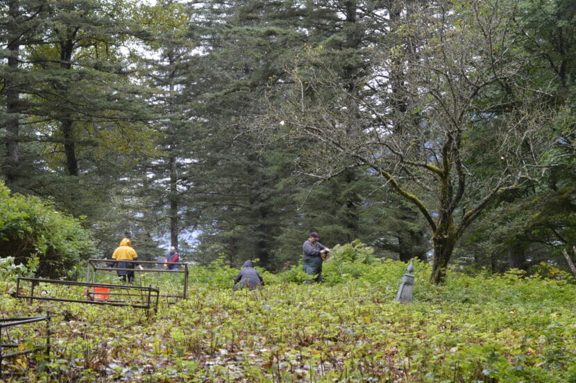 For three years, this group of volunteers has been coming to the cemeteries to weed, clean gravestones and clear brush. First, they worked to clean up the Native cemetery, a plot of land where Alaska Native people were buried for several decades, starting in 1901. Now, they’ve started caring for the other cemeteries in the area, like the Asian cemetery and the old Douglas city cemetery that only allowed white people.